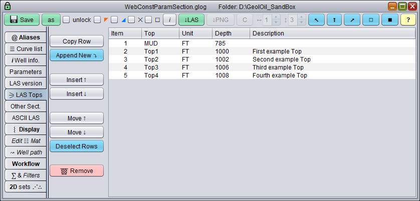 Since GeolOil uses the Sigil "%" to read values from the LAS and GLOG sections of Parameter, Tops,